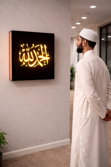 12×12 Inch MDF Warm LED Wall Light – Islamic Calligraphy Design