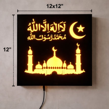 12×12 Inch MDF Islamic Warm LED Wall Light – Kalma & Mosque Design