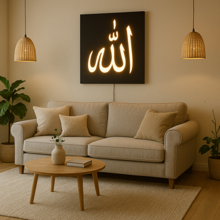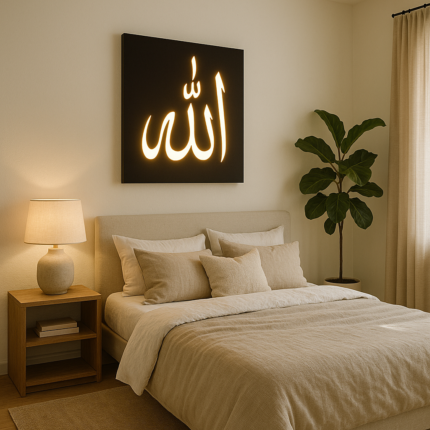 12×12 Inch MDF Islamic Warm LED Wall Light – Allah Calligraphy