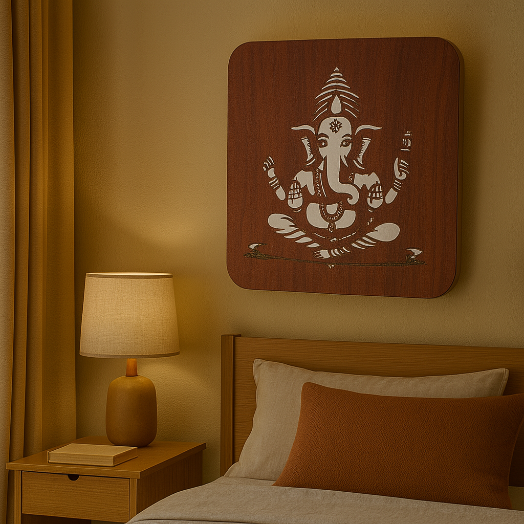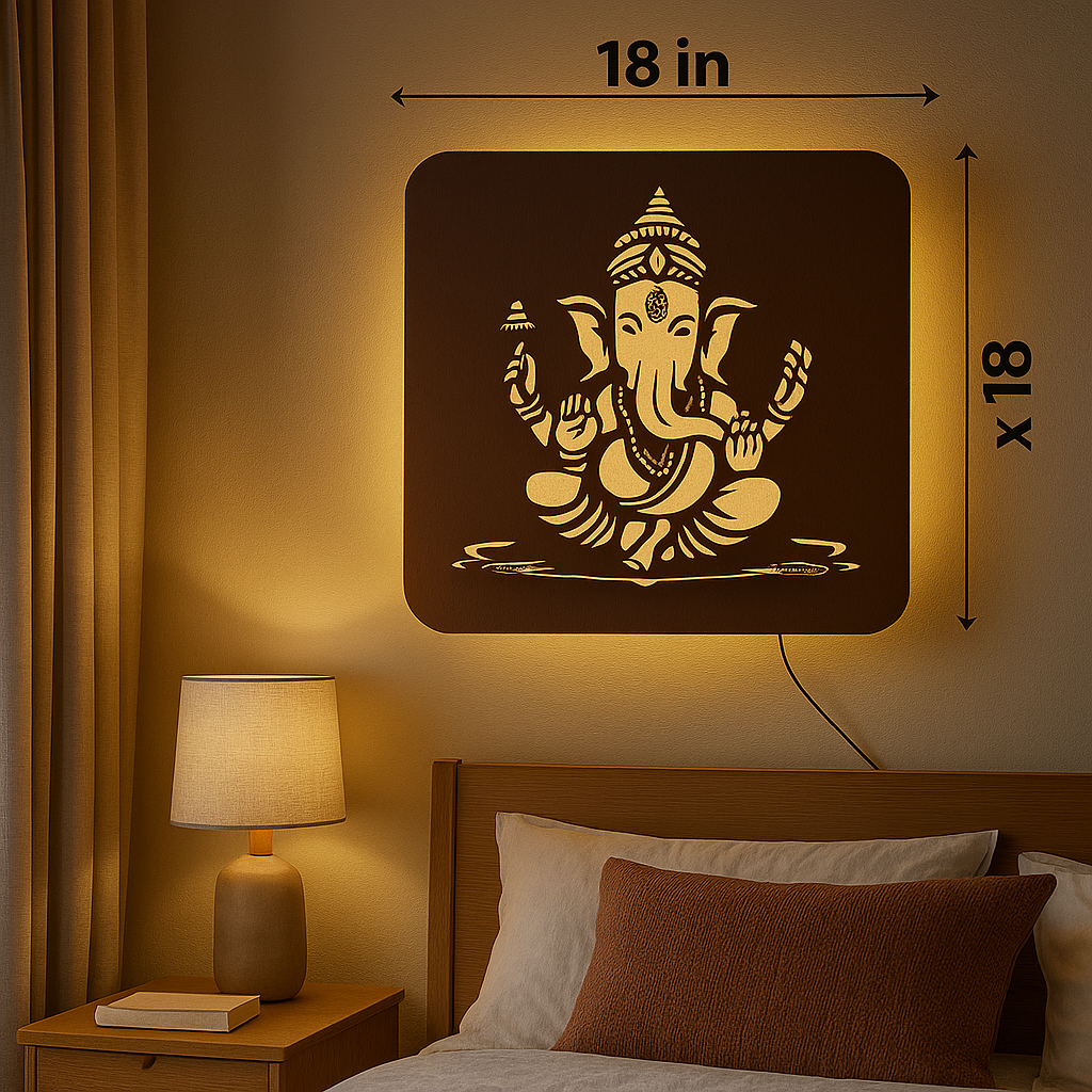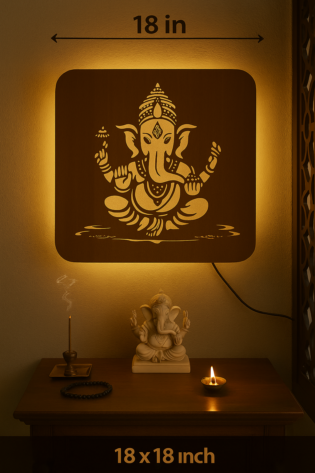 Bring positivity, prosperity, and divine blessings into your home with this beautifully crafted Lord Ganesh Ji Wooden LED Wall Light. Made from premium MDF wood, this wall light features an intricately cut Ganesh Ji design that glows softly with warm LED lighting. The elegant wooden finish combined with subtle illumination creates a peaceful and welcoming ambiance, perfect for both traditional and modern interiors.