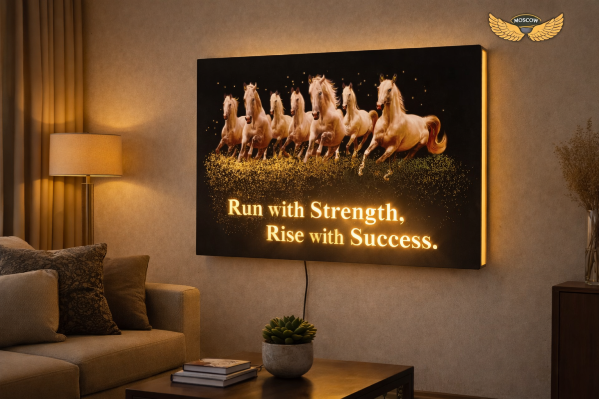 7 Horses MDF Warm LED Wall Light – Velvet Print with Gold Leaf Finish