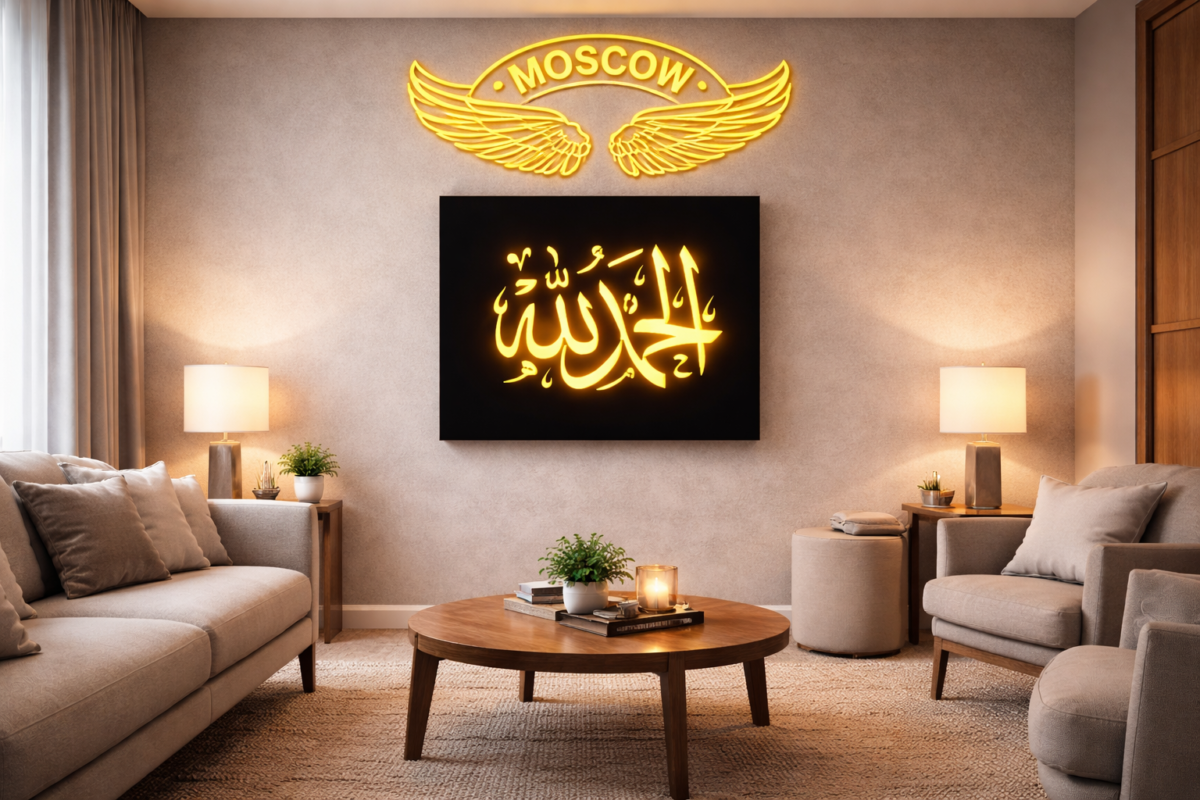 12×12 Inch MDF Warm LED Wall Light – Islamic Calligraphy Design