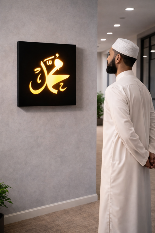 12×12 Inch MDF Islamic Warm LED Wall Light – Muhammad Calligraphy